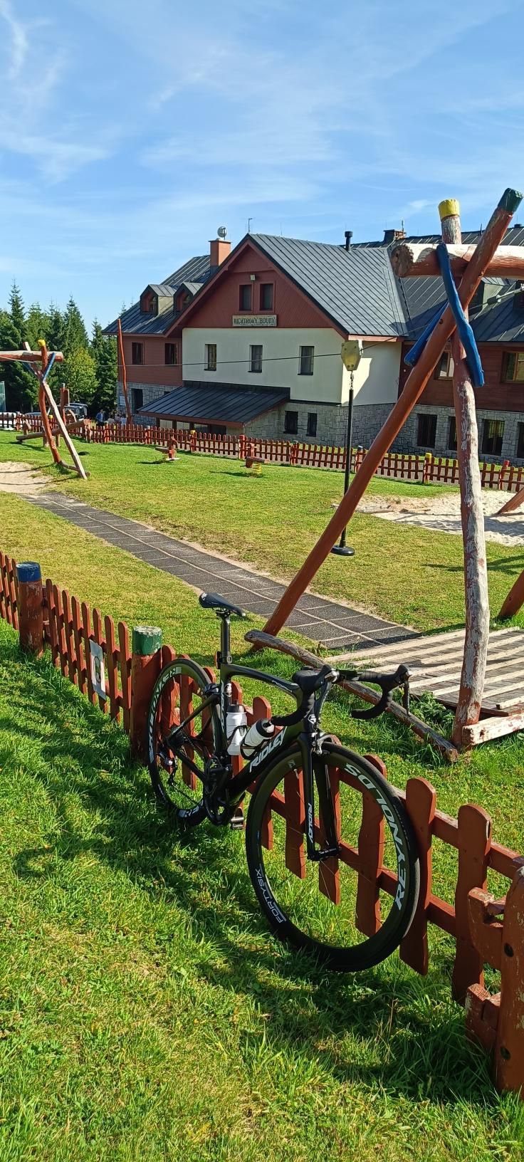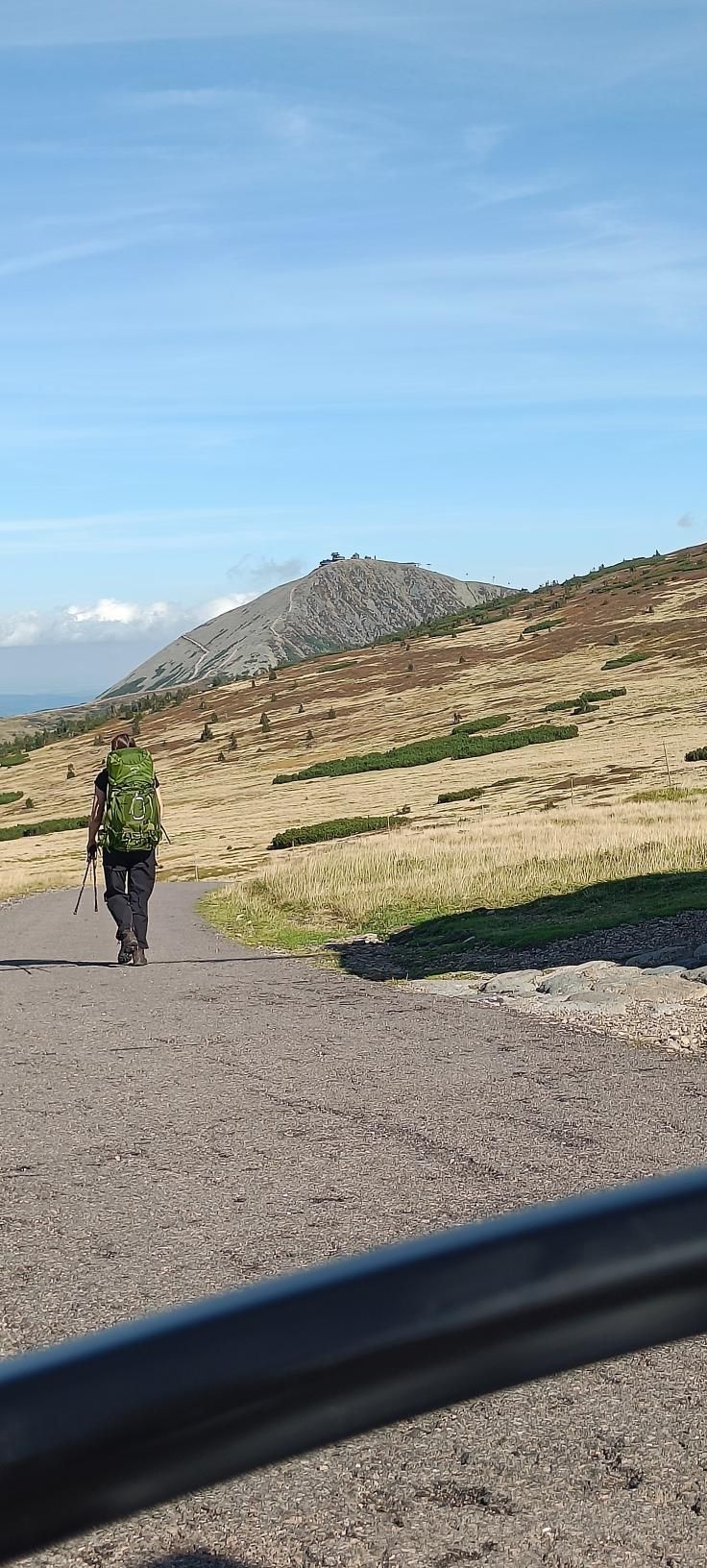 Od tego momentu moja pewność siebie spadała z minuty na minutę do zera. Po 5 minutach zatrzymałem się i musiałem odpocząć. Miałem wrażenie że było z 15-16% non stop. Wyprzedził mnie gość na MTB a zaraz za nim inny na szosie. Szacun dla nich że nawet się nie zatrzymali. Ruszyłem i w oddali widziałem jak jadą "wężykiem" gdyż w tym miejscu jak się później okazało było 18%. Masakra. Podjechałem do końca i na zakręcie znów zrobiłem postój. Następnie lekko z górki i znowu ostro do góry ale za chwilę pojawiło się schronisko Richtrovy boudy, gdzie także się zatrzymałem xD